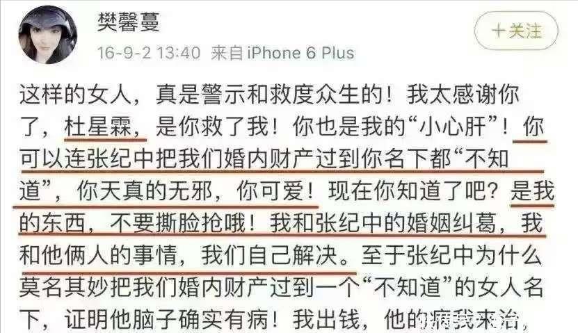 可她无论怎么退让,都成了对方越发放肆的理由。杜星霖曾公开说过,他和张纪中是合法夫妻,樊馨蔓的指控纯粹是故意造谣。